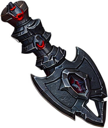 这件凶残怪诞的双手武器形似一把巨大的棍棒状长剑。“剑刃”由一系列锋利的深色骨骼和筋腱打造而成,剑尖处饰有骷髅图案。剑柄造型古朴,并用皮带和锈迹斑斑的金属环加固。护手则由相互交错的骨骼碎片构成。图标背景是一个阴暗阴暗的地牢场景,隐约可见骨骼轮廓。光线昏暗,令人毛骨悚然,骨骼边缘呈现出尖锐诡异的高光。
