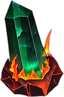 一个不规则的棱角分明晶体的狂暴火焰石。宝石颜色是半透明的深红与焦黑的混合,要求在晶体内部渲染出微小的、跳动的橙色火焰和黑色烟雾。要求晶体边缘粗糙、尖锐,散发出灼热的危险感。风格为野蛮、强烈的黑暗力量,适合作为近战狂暴或伤害爆发技能图标。高对比度,质感粗粝。
