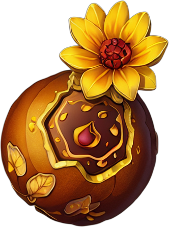 一个自然、富有秋季韵味的中秋活动图标。主体是一个绽放的金色桂花枝条,枝条上挂着晶莹的露珠,几片桂花花瓣正在飘落。桂花中央可以巧妙地融入一个Q版酒坛或一个象征秋收的果实。图标色彩以鲜明的金黄、褐色和墨绿为主,强调秋天的丰收和香气。要求去除所有背景,仅保留桂花枝和酒坛/果实。整体风格为清新、自然且富有季节感,适合作为中秋节资源收集或酿酒主题活动入口。
