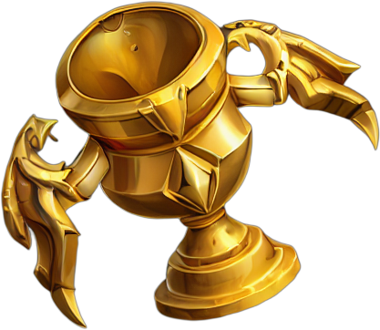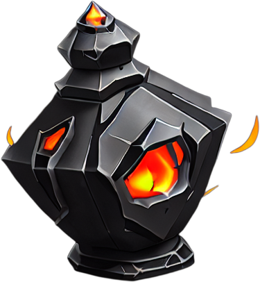 一个古老、粗犷的黑色玄武岩奖杯,奖杯主体上布满了裂痕和熔岩纹理。奖杯的手柄被火焰状的橙红色光芒环绕,杯口冒出微弱的烟雾,仿佛内部装载着灼热的岩浆。风格设定为黑暗幻想或原始部落,强调力量和挑战。要求质感厚重、粗糙,光效以暖色调为主。完全去除背景,仅保留奖杯和火焰效果。